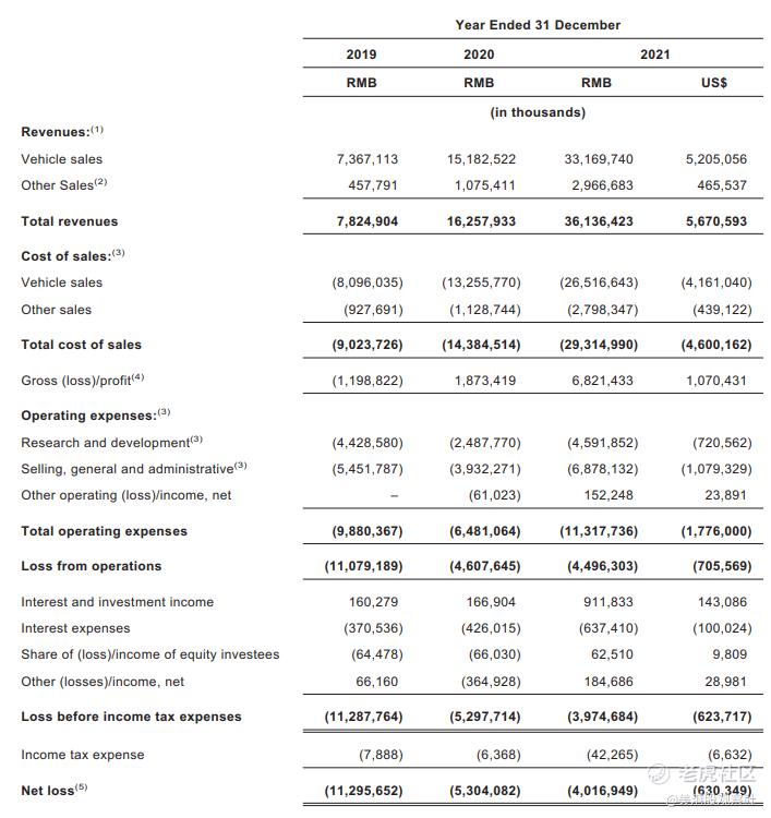 财务数据方面,蔚来2021年全年营收突破360亿元人民币,较去年增长超过一倍。毛利率由2020年的11.5%大幅提升至2021年的18.9%,盈利水平有了显著提升,公司净亏损也在逐年收窄。值得一提的是蔚来对研发的重视,2021年全年公司研发费用高达45.9亿元人民币,同比接近翻番。