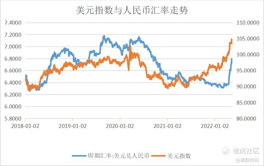 自乌俄冲突爆发以来,我国人民币就陷入了震荡走势之中,作为俄罗斯的邻国,乌克兰的农贸伙伴,两者的军事冲突无论起因为何,对我国来说都会有难以回避的影响。乌俄冲突飙升的油气价格显著加剧了全球的避险情绪。黄金上涨,带动美元指数上行,美元指数的上行则是本轮人民币贬值的主要外部因素。