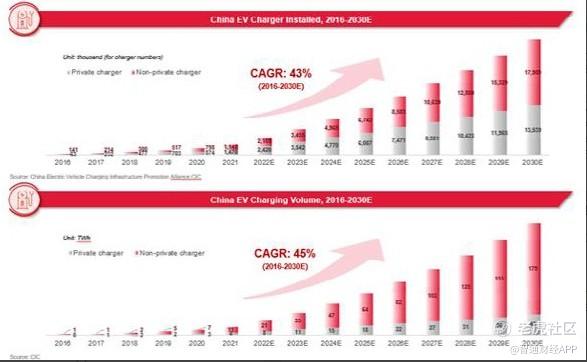 2021年,中国新能源汽车市场进入爆发式增长阶段,市场渗透率在22%左右——已提前到达20%的拐点。新能源正是风口。根据CIC的数据,预计到2030年,公共直流快充的数量将增长到794万个。2016年、2020年和2021年,中国的公共直流快充分别占公共充电桩充电量的59.6%、83.5%和90.1%,预计到2030年这一比例将达到95%。