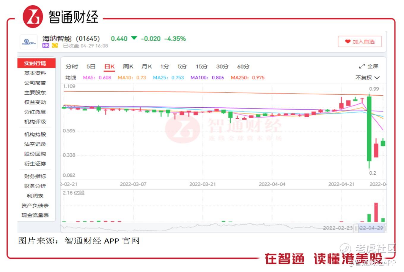 近几天来,资本盯上了港股小盘股,部分个股出现了巨大的波动。比如4月27日卓航控股$卓航控股(01865)$ 股价发生剧震,当日从0.99港元的开盘价,最低下探至0.079港元,全天跌幅高达90.82%;同样,海纳智能(01645)也遭遇暴跌,一个小时跌幅达也达七成……