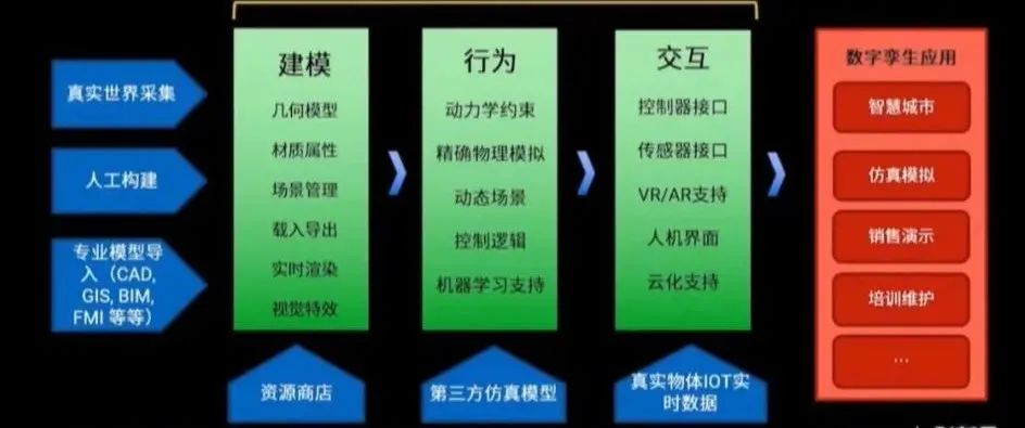 游戏就是实时可交互的3D应用。电影、动画、广告也是3D的,非常逼真,但它不能交互。而数字孪生是一种可交互的3D应用,首先因为物理世界本身就是3D的,其次它要和真实世界获得同步的响应。