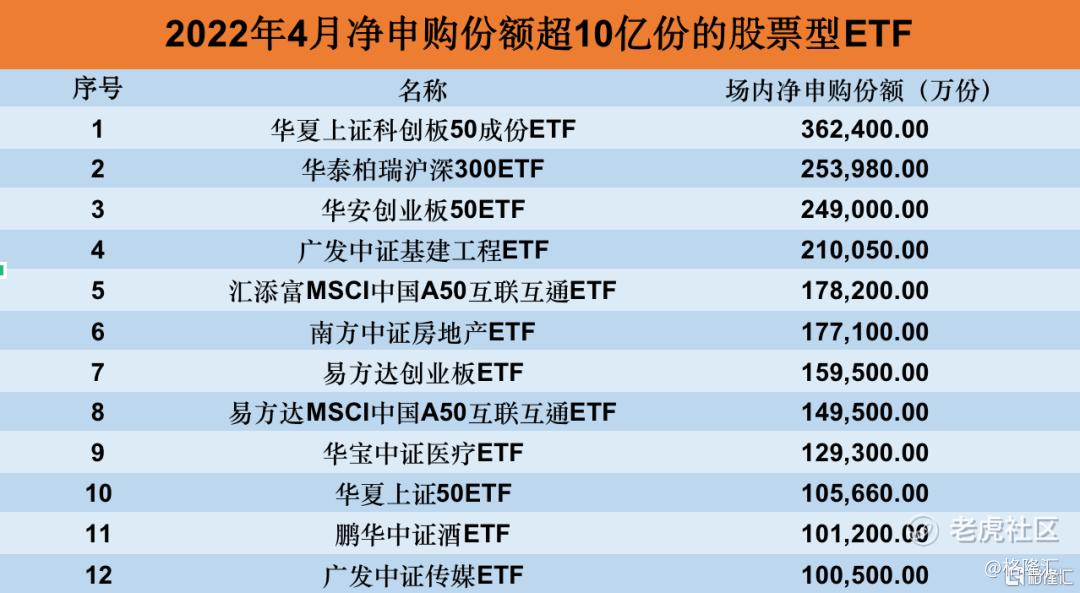 从资金流向来看,宽基类ETF颇受青睐。4月以来,共有12只股票型ETF净申购份额超10亿份。