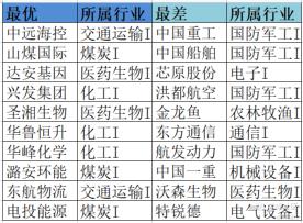 价值投资的核心是选择低估值的优质股,我们以低PE代表低估值,以高ROE代表优质,在中证800成份股的基础上过滤掉房地产、银行行业的股票,以及停牌股和新股,通过PE和ROE排序打分得到最优和最差的10个股票,仅供参考: