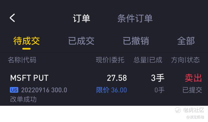 - 如果有深度的下调,加仓3手微软的SP,行权价300,行权日9月16日。