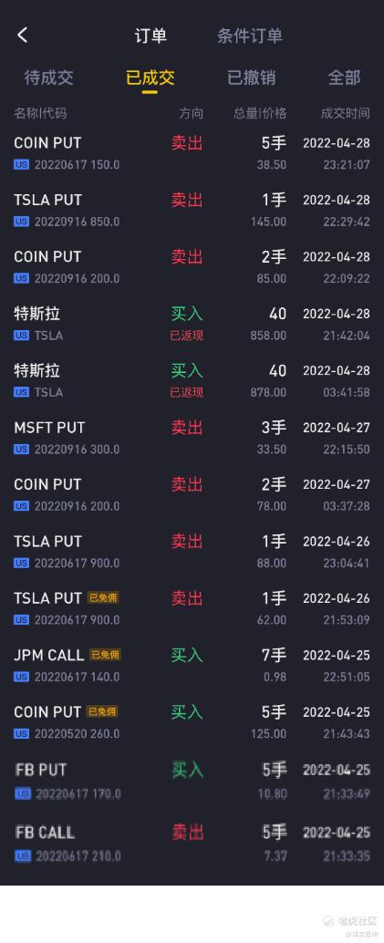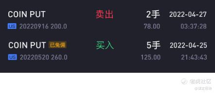 随着COINBASE的股价大幅下跌,手头上5月份SP变得岌岌可危,因为时间价值已经变得很小,对手随时有可能提前行权的,这个时候我是绝对不想拿出现金来买入正股的。因此比较保险的做法就是提前平仓,等股价再下跌一些的时候卖出更远期的SP,同时降低行权价,以时间来换取空间。