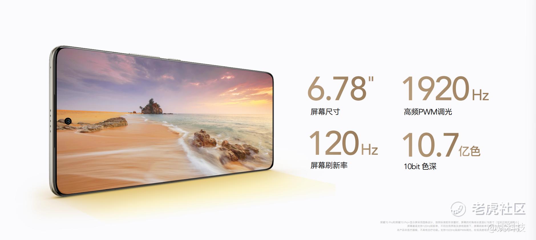 荣耀70 Pro和荣耀70 Pro+配备的是一块同样惊艳且通过了HDR Vivid世界超高清视频产业联盟认证的6.78英寸OLED屏幕,具有1920Hz高频PWM调光、120Hz屏幕刷新率及10.7亿**彩显示,视觉效果、色彩、对比度实际体验都非常优秀。