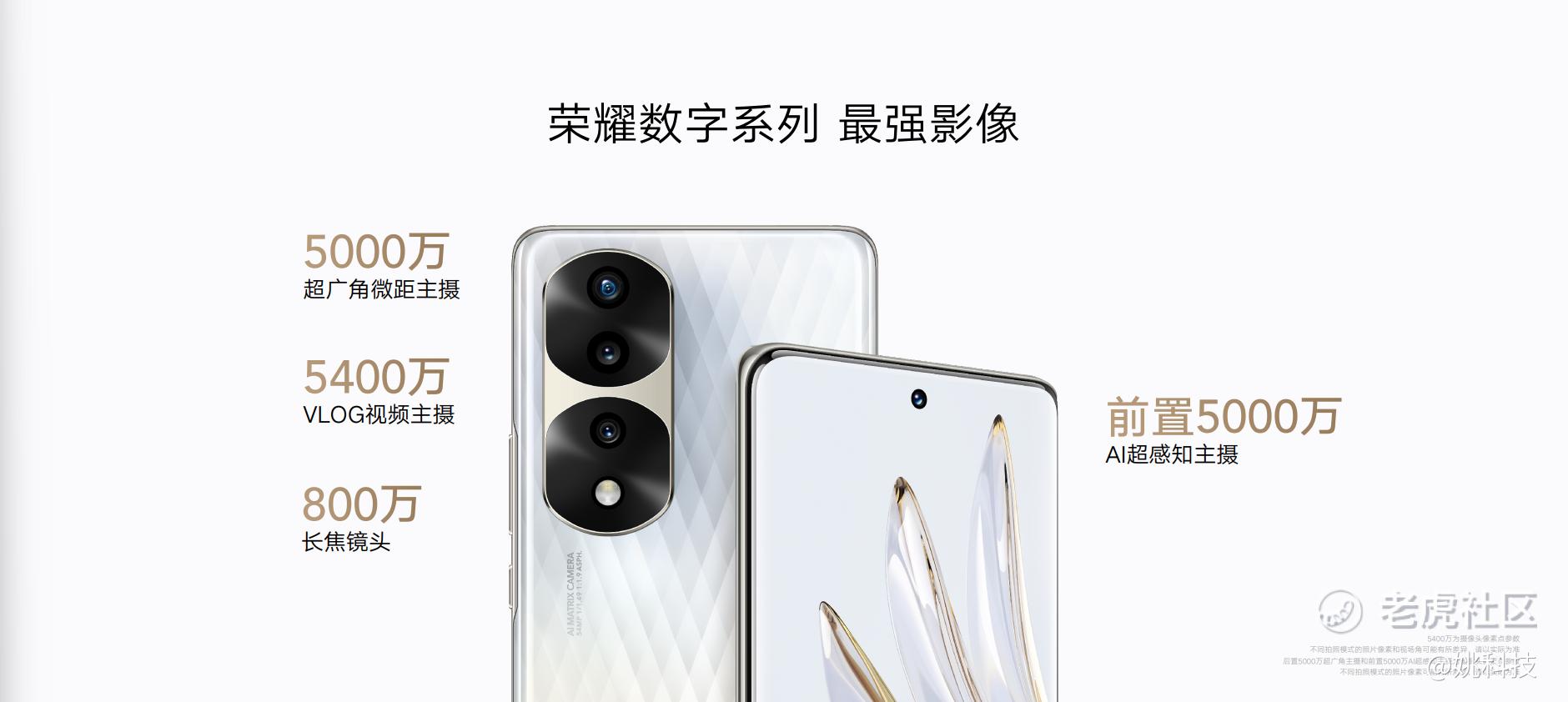 荣耀70系列业内首发5400万像素的IMX800视频主摄,并且首次将在Magic系列旗舰产品上广受好评的HONOR Image Engine计算影像平台带入数字系列,打造荣耀数字系列自由影像风格,带来影像能力的全面提升。