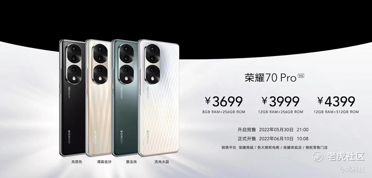 荣耀70系列实现了影像、外观、性能体验上的全面升级,称得上是一代全新换代之作。自2022年6月7日起,荣耀70系列将陆续在线上线下平台全面开售,具体时间详见荣耀官网,用户可登录荣耀商城及各大授权电商平台或前往线下门店进行购买。