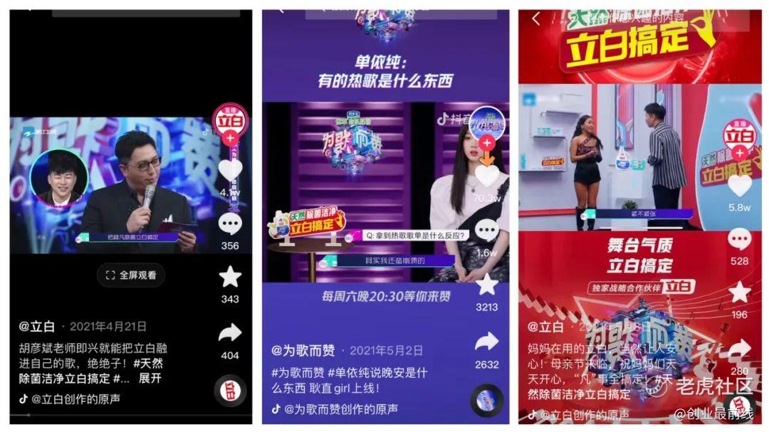 而立白则利用抖音热榜+抖音综艺IP实现台网联动,让大家“为歌而赞”的同时也顺便“为立白而赞”: