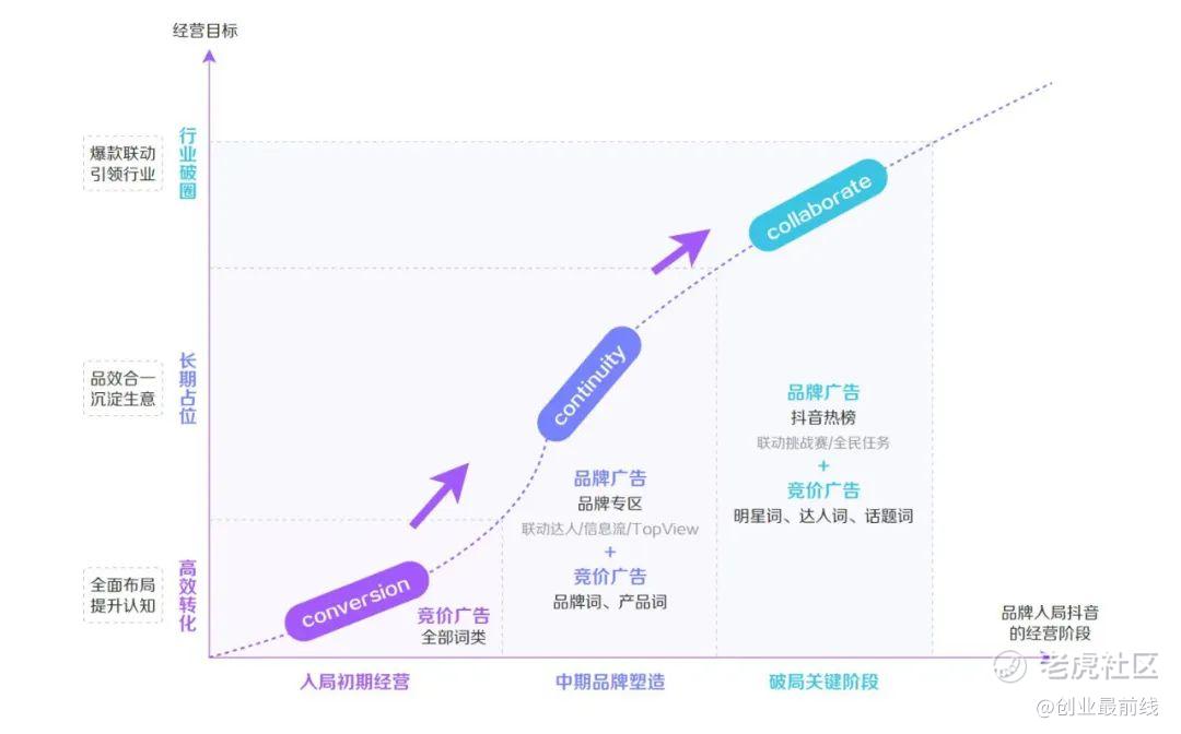 第一步,对于刚刚入局抖音的电商生意、还处在经营初期的品牌,这时用户知道品类,但可能叫不出品牌名字,需要主动和用户沟通促进转化(CONVERSION)。
