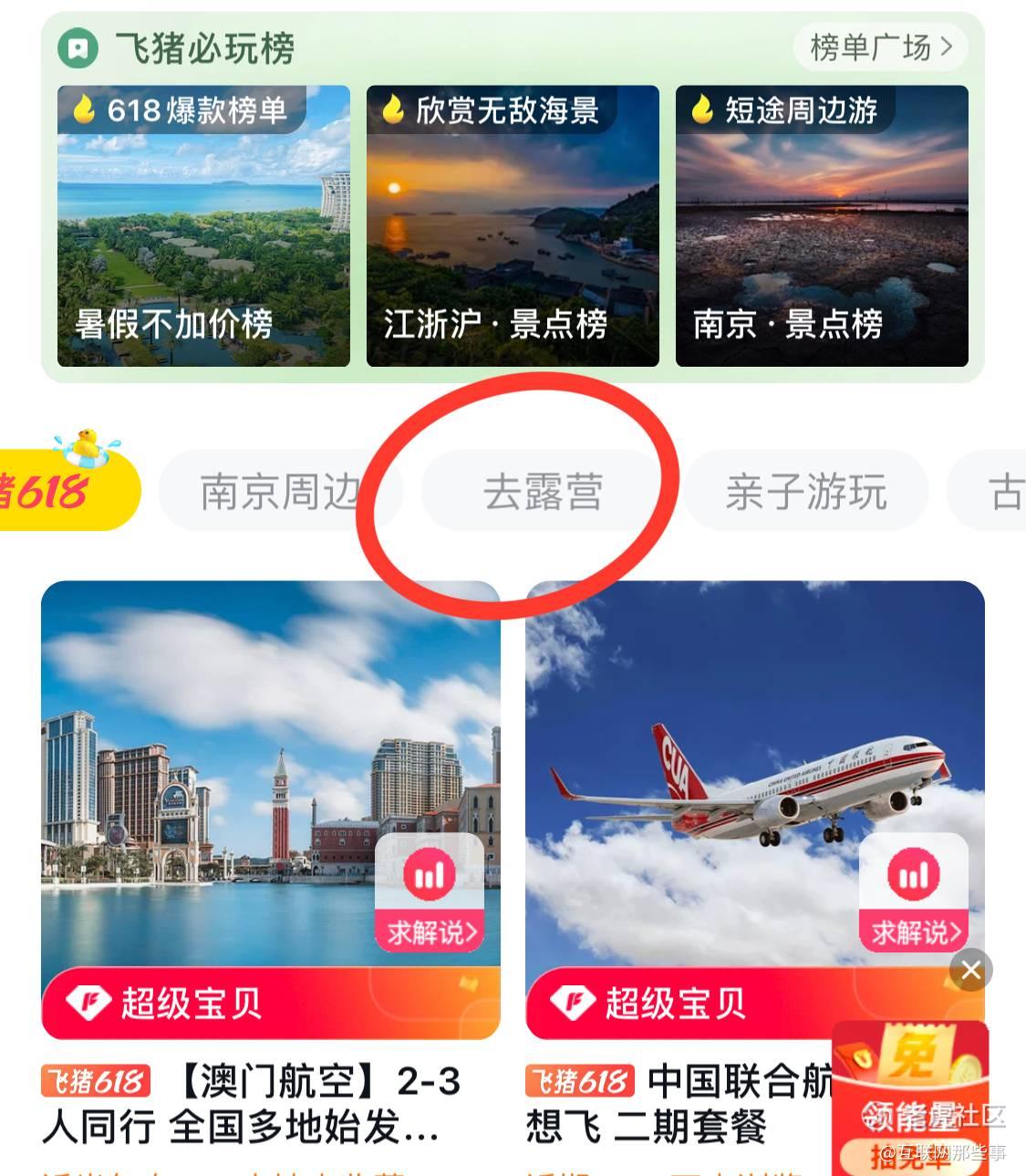 各家平台纷纷上线的多城多营地露营套餐、周边游、亲子游。