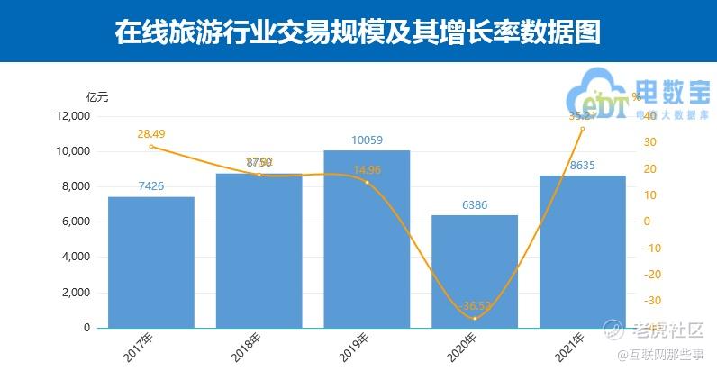 根据网经社发布的《2021年度中国移动出行市场数据报告》,2021年在线旅游市场规模约为8635亿元,同比增长35.21%,渗透率约为29.6%;用户规模约为4.49亿人,同比增长3.93%。