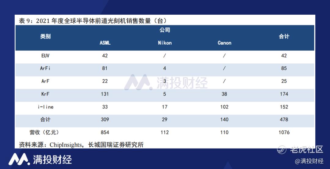 2021年度全球半导体光刻机销售情况