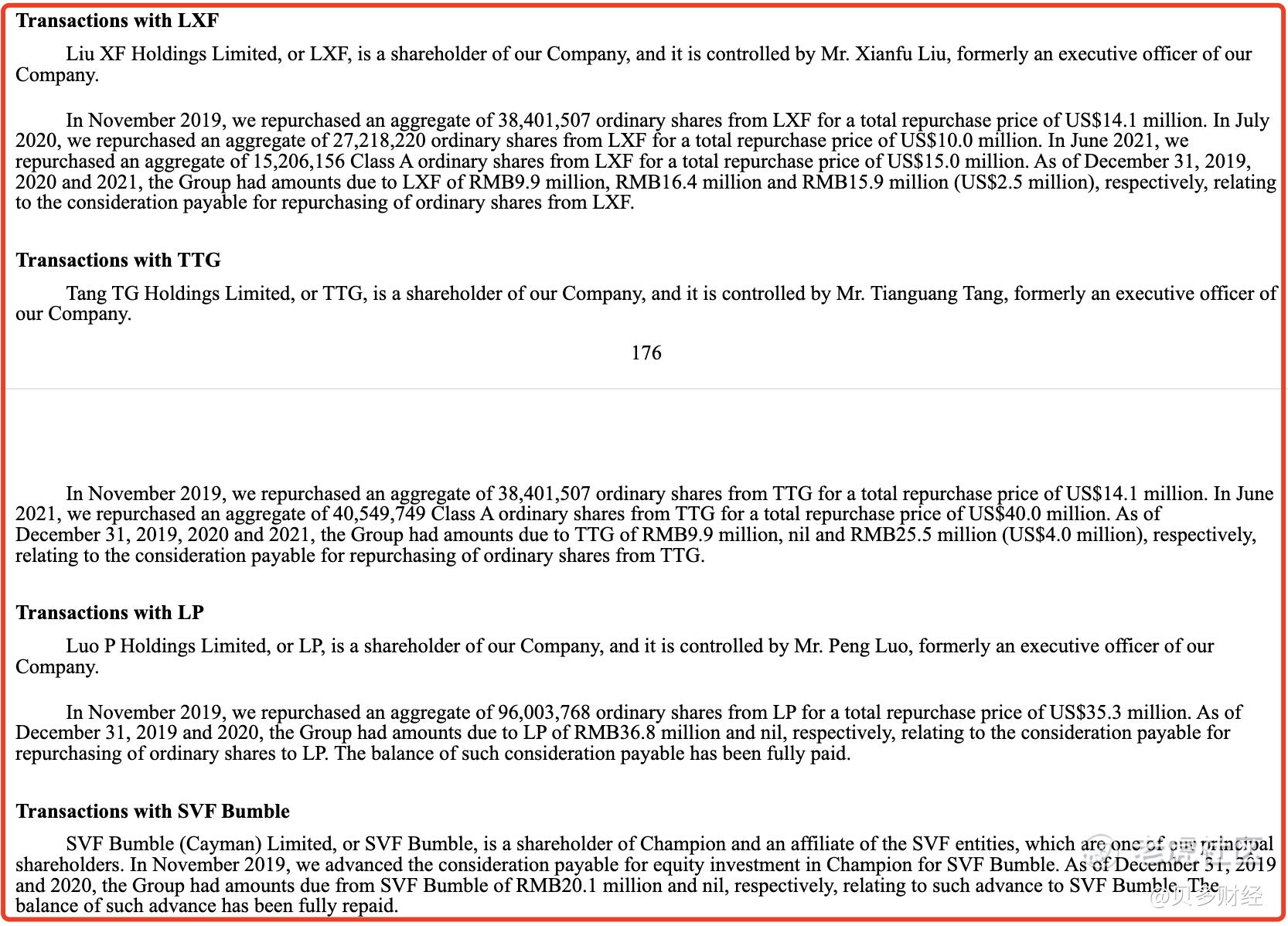 另据满帮2021年年报,满帮于2021年6月向戴文建(Dai WJ Holdings Limited)回购了91,236,935股A类普通股,总回购价格为9000万美元;而在2021年1月,满帮向戴文建的DWJ Partners Limited回购了1000万股普通股,回购价格为370万美元。