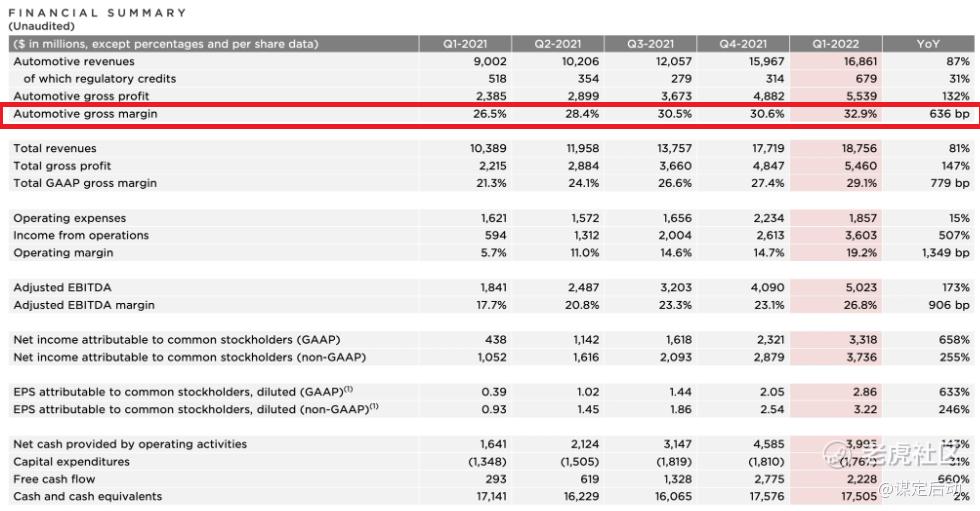 车子造出来了,也卖出去了,赚不赚钱,赚多少,关键就要看造车毛利率。造车毛利率直接对应的是公司管理层的执行能力,成本控制能力以及产品在市场的话语权。特斯拉第一季度的造车毛利率达到了惊人的32.9%,这甚至比很多做软件的高科技公司还要高。如果对标车企的话,丰田大概是20%,福特是15%。