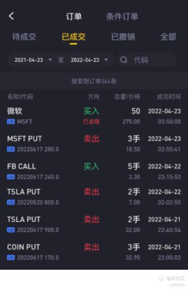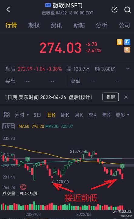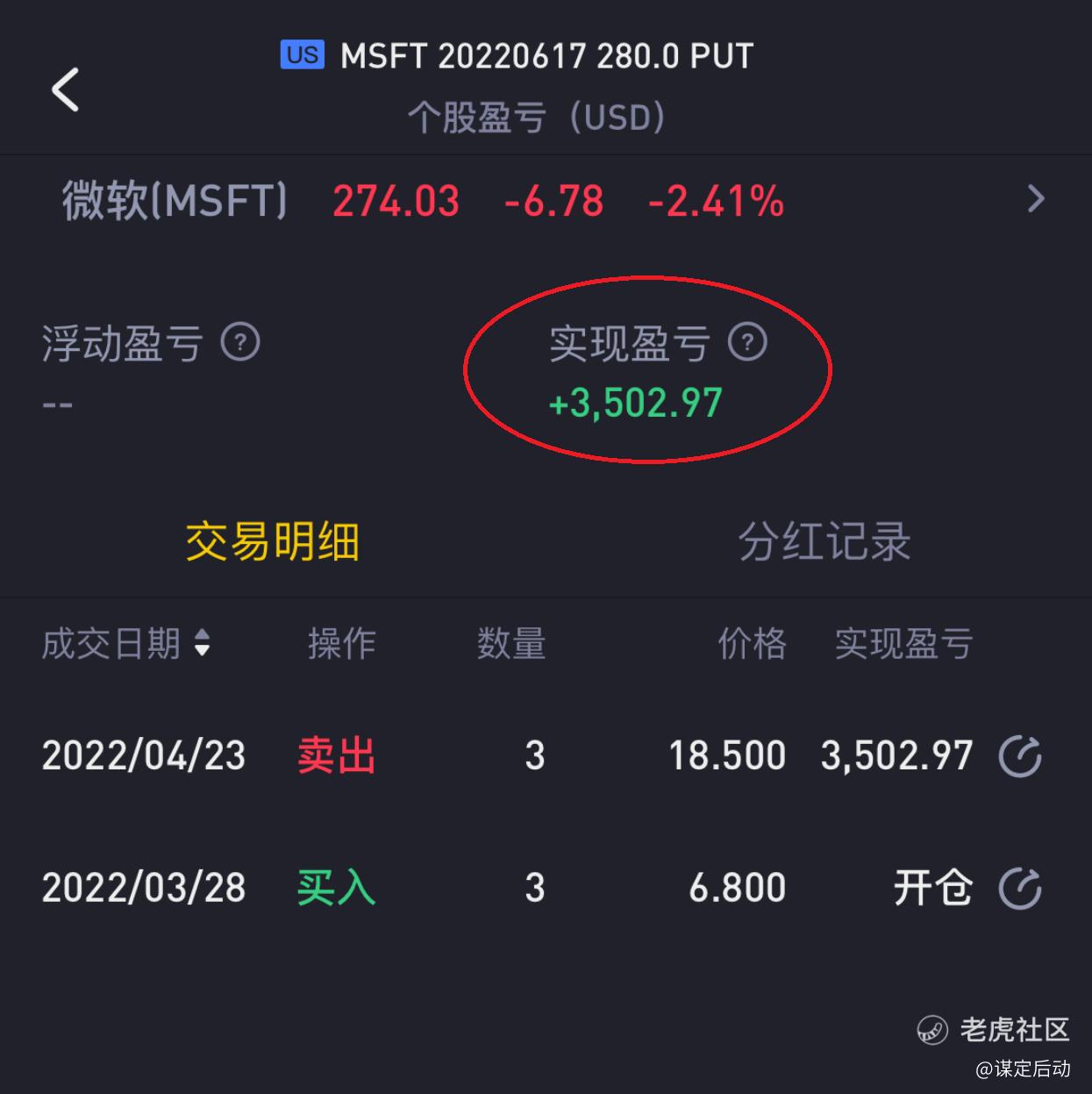 微软股价已经跌到3月8日的最低点位置,下星期二盘后将发布财报,因为微软一直以来稳健的表现,我看好它能交出一份好的成绩单。因此趁着低点,提前平仓PP获利。