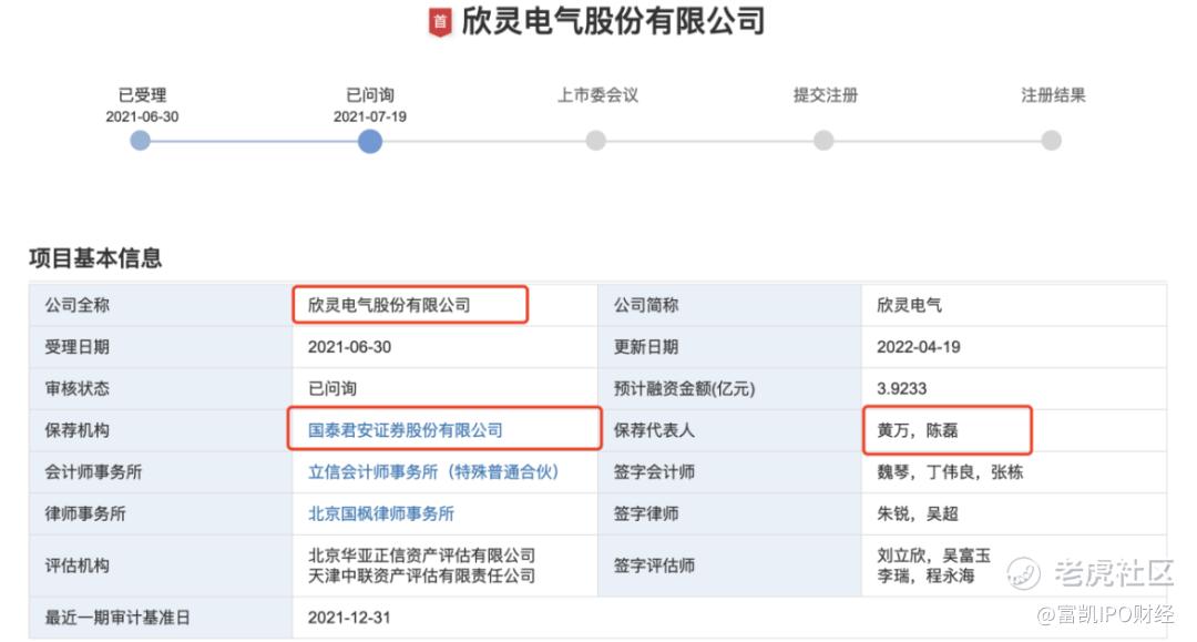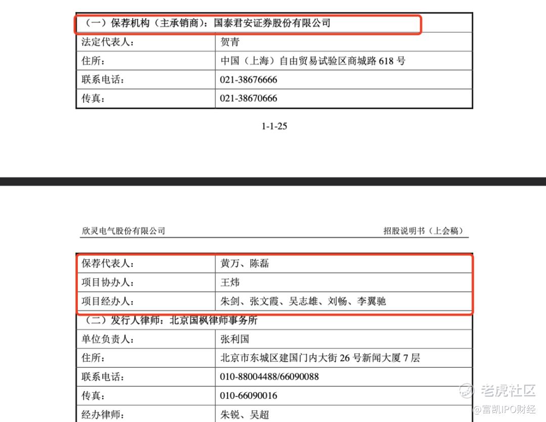 欣灵电气保荐机构(主承销商)为国泰君安证券股份有限公司,保荐代表人:黄万、陈磊,项目协办人:王炜,项目经办人:朱剑、张文霞、吴志雄、刘畅、李翼。
