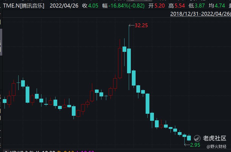 腾讯音乐在二级市场也好不到哪儿去。去年3月末,腾讯音乐股价最高曾达到32.25美元,在4月27日美股开盘前,股价还剩4.05美元,回撤大约87%。基本是半斤对八两,相对而言,收入规模更高,一直在盈利状态的腾讯音乐日子稍好点。