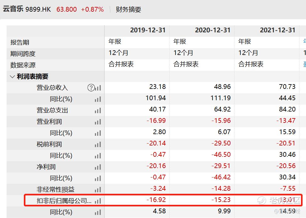 如果扣除非经常性损益(如公允值变化等),则网易云音乐去年亏损13亿元。