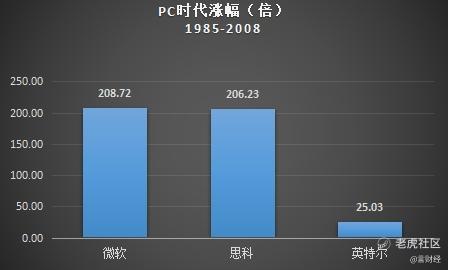 乍看之下,微软的涨幅远不如苹果及亚马逊,但是考虑其巨头的市值基数,微软在移动互联网时代市值还是成长为全球的前三,与苹果、亚马逊比肩,而且远远超过英特尔、思科等PC时代巨头。