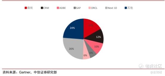 而在SaaS层面,微软已经是全球最大的SaaS公司,相对于亚马逊以Iaas为主,作为全球软件行业霸主,微软的SaaS收入也制霸全球,来自各条业务的云SaaS使得在2019年的SaaS收入排名上,微软以17%的市场份额遥遥领先。