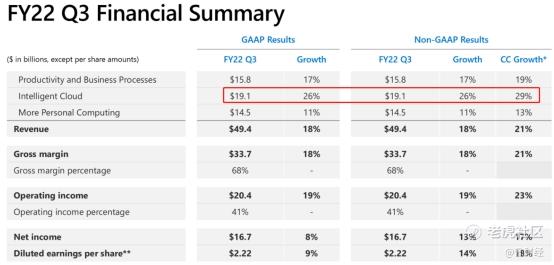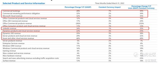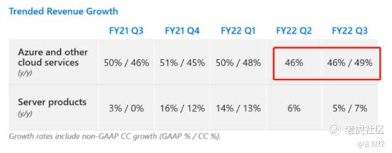 · 服务器产品和云服务收入增长 29%(增长 32% CC)受 Azure 和其他云服务收入增长 46%(增长 49% CC)的推动