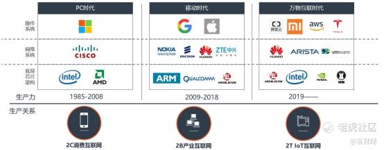 伴随网络通信技术的发展,这个阶段是全球个人电脑加速普及的阶段,生产力的进步主要来自电脑领域,以思科为代表的企业构建起网络系统的基础,网络的普及带动个人电脑的普及,带动操作系统微软、CPU芯片英特尔、AMD等的极大发展,电脑的普及改变了很多行业的发展,产生了新的生产关系,2C消费互联网开始发展