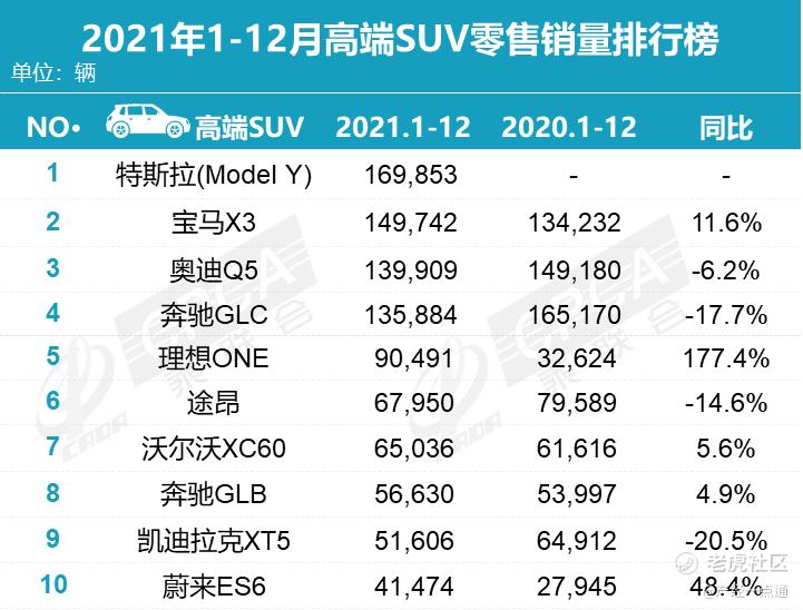 ▲2021年全年豪华SUV销量排行榜(来源:乘联会)