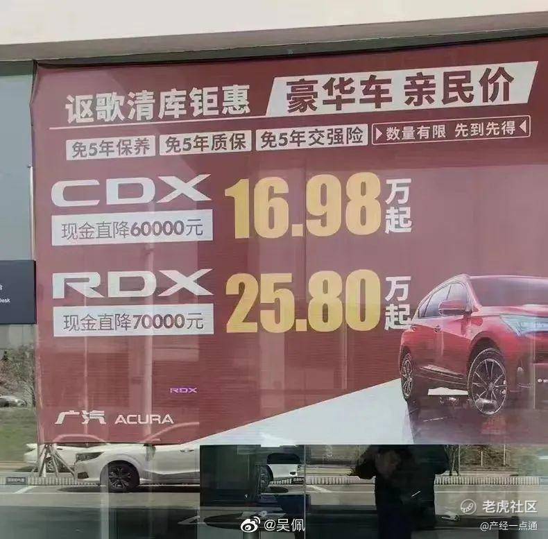 ▲讴歌车型“打骨折”降价清库存(来源:微博@吴佩)