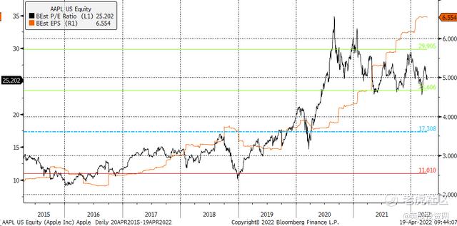 所有这些都推动苹果的营收和收益创下历史新高,并帮助扩大了该股的市盈率。虽然苹果未来几年可能表现强劲,但这并不意味着它的股价在短期内不会回落,因为市场会重新定价风险和对更高利率环境的估值。