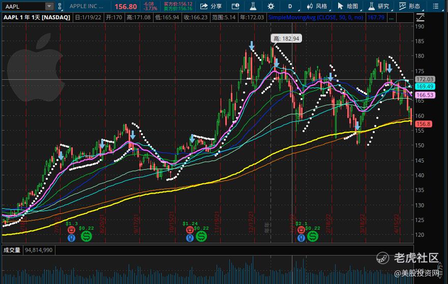 我们认为,苹果每一次的回调都是咱们买入的机会,都是长线投资者的稳定现金牛股,股价一直每次都能在200天均线附近获得支撑反弹,难怪它一直都是华尔街机构第一重仓股。没有之一。