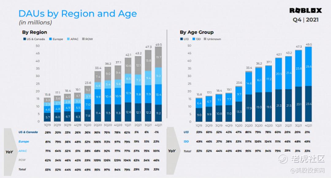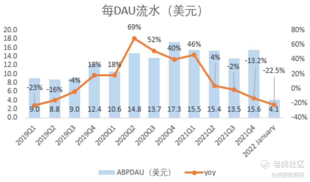 我们认为首当其冲的原因是疫情引发对视频游戏的狂热逐渐消退,加上欧美地区疫情监管趋缓,Roblox用户成长也势必放缓。疫情以来,Roblox经历了巨大的用户、预订和收入增长,但是现在随着重新开放,户外活动的增加直接影响到了Roblox的用户支出,Roblox的第四季度财报显示第四季度的日均活跃用户数平均预订量(ABPDAU)为15.57美元,同比下降了13.2%。