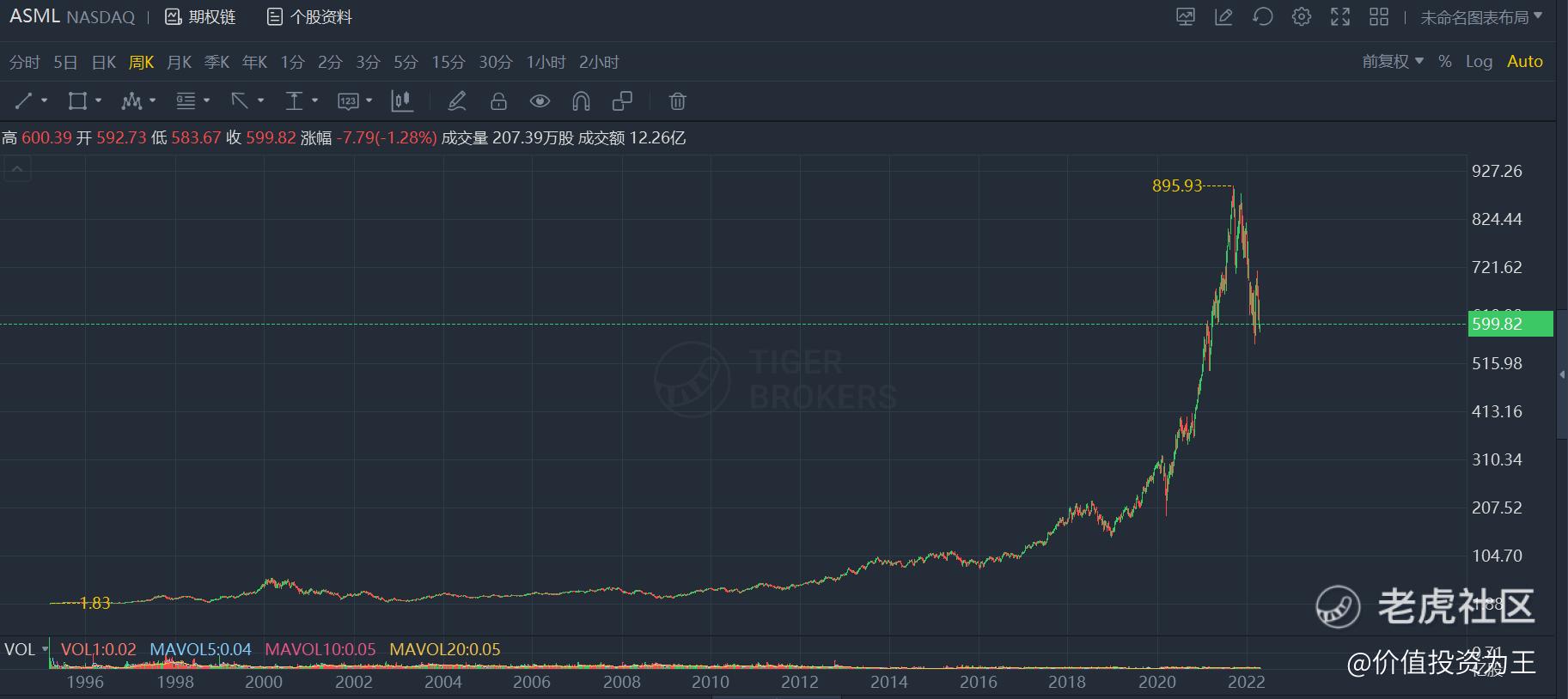泡沫破裂后,阿斯麦股价最低来到2002年时的5.6美元。