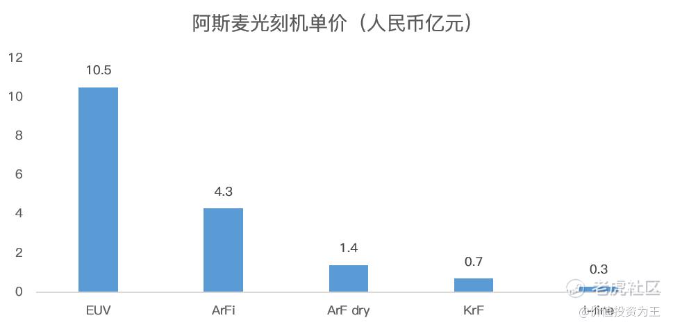 2021年,一台EUV的价格是10.5亿人民币,DUV-ArFi为4.3亿人民币,最便宜的是UV-iline,一台仅3000万人民币。