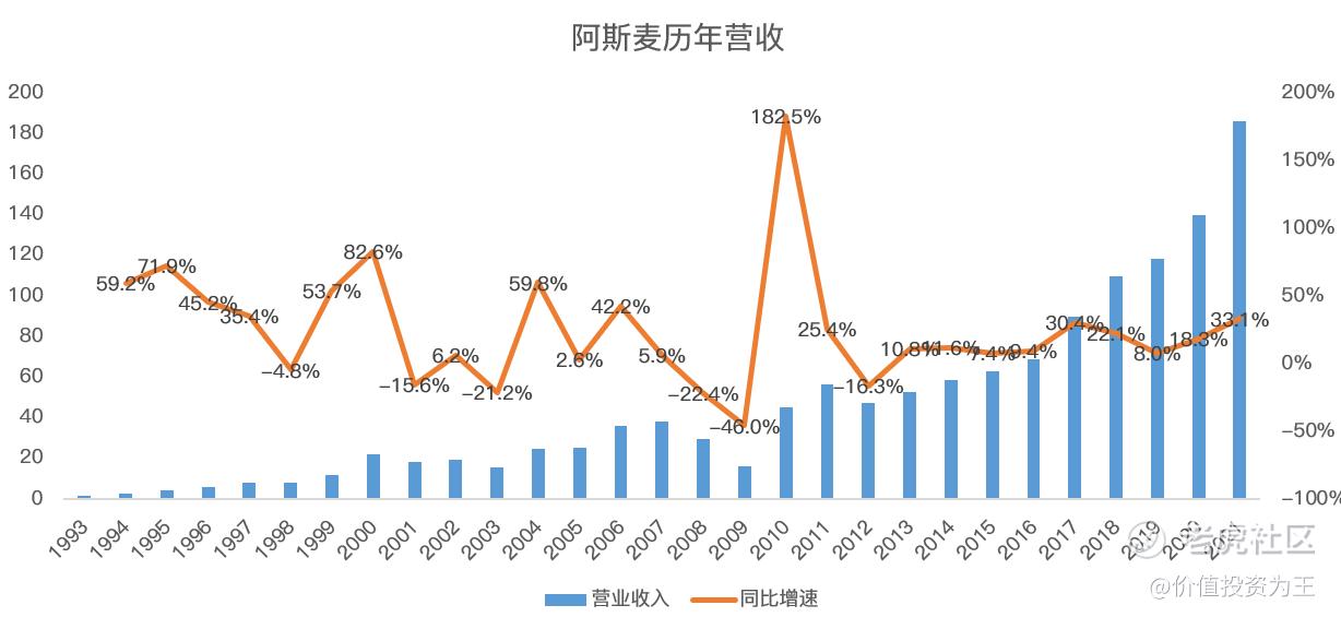 一是上世纪90年代,业绩高速增长,营收增速高达50%;