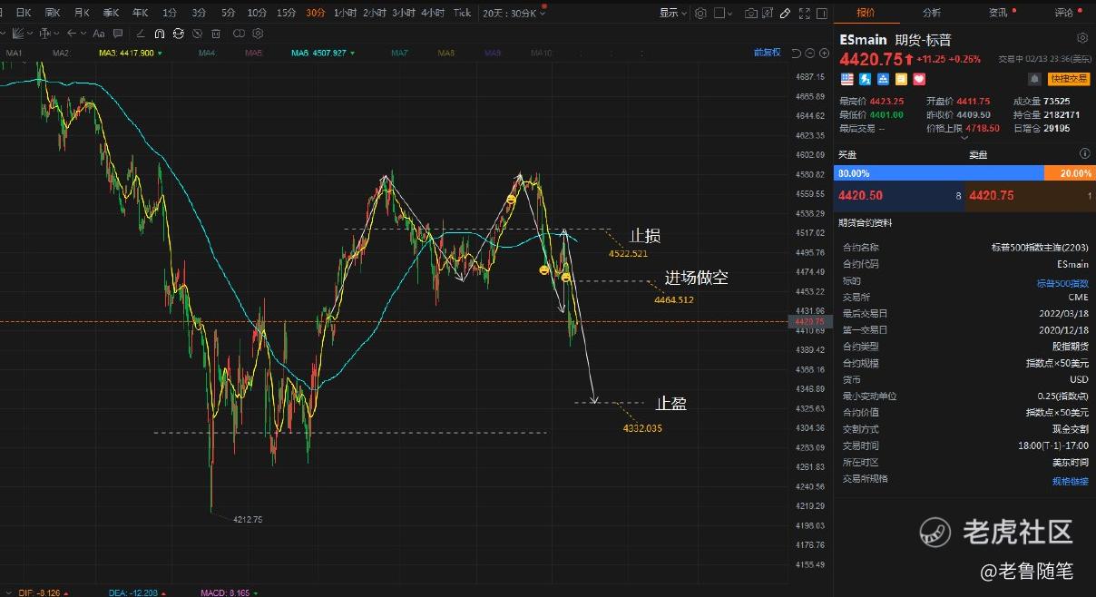 通常我对期货的分析都是这样的,在交易之前确定好止损和止盈位置,交易的时候直接设置好就可以了,不用开仓后眼睛都不眨的盯着大盘,厕所都不敢上,我相信很多人刚开始接触交易的时候都有过这样的经历,之所以会紧张和恐慌,是对自己的交易不自信,说白了其实是认知不足,即使我给了你图中这样的结果,你照着抄作业,都有可能被途中的某个小波动给吓出场,但当你自己能够独立学会并分析出止盈止损点后,我相信,这种方式会让你的交易之路走得更远。在老鲁社群的朋友应该对这种分析并不陌生,长期学习下来应该都会逐渐建立好自己的分析系统和交易系统。