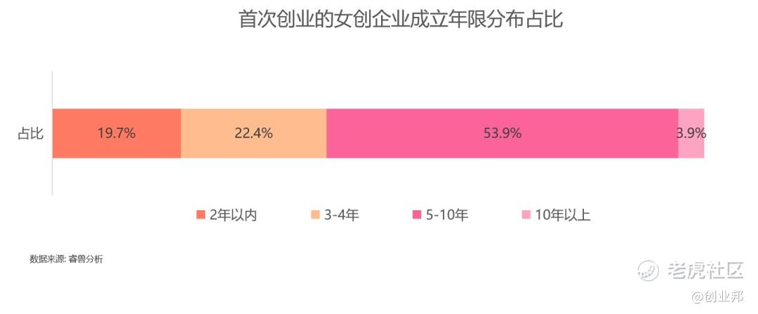 从女性创业者的调研样本来看,64.4%的女性创业者都是第一次创业,而且在第一次创业的这部分创业者样本中,创业公司成立年限超过5年的占比高达57.8%。
