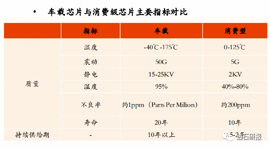 相比于消费级芯片,车规级芯片验证周期较长(3-5年),进入Tier1或车厂需要进行严苛的认证工作。认证工作主要有两项:北美汽车产业所推的AEC-Q100(IC);符合零失效(ZeroDefect)的供应链品质管理标准ISO/TS 16949规范。