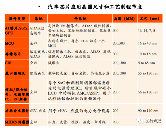 4、汽车功能芯片以成熟工艺为主,主控芯片在持续追求高端制程。