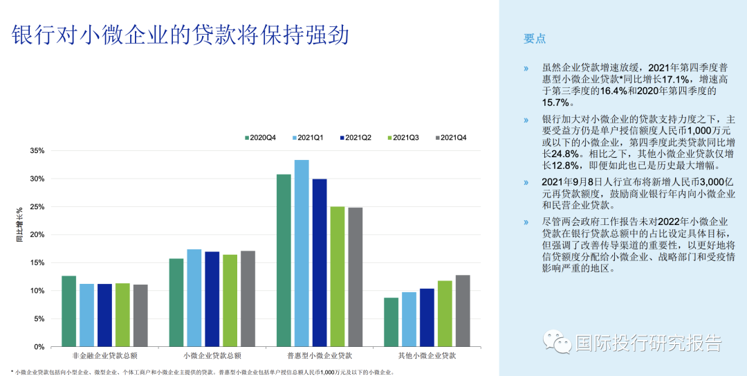 持续监管整治下影子银行业对金融体系的蔓延风险降低 几年来的强化监管整治降低了影子银行业对金融体系的蔓延风险。2021年第四季度商业银行对 非银行金融机构的净债权继续下降,主要源于大型银行对非银行金融机构的净债权减少。不过 中小银行仍有潜在风险,因为其与非银行金融机构的相互关联性仍然较高。