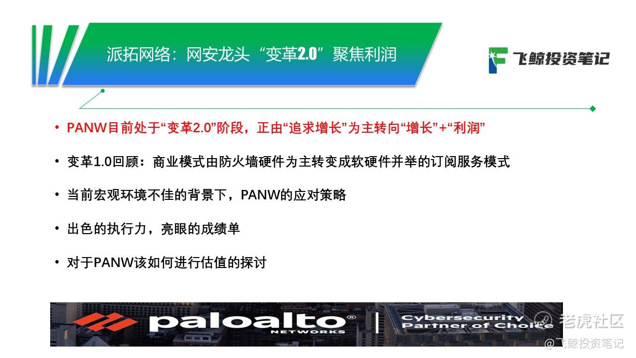 美股网络安全板块的龙头之一$Palo Alto Networks(PANW)$ 目前正处于“变革2.0”阶段,我的视频分析链接https://youtu.be/yQw8d4RMCaU