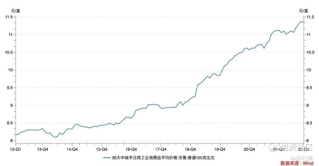 近几年,牙膏价格的确在持续上涨。据Wind数据,2013年至今,中国牙膏价格整体保持上升走势,尤其是2018以来,涨幅更为明显。