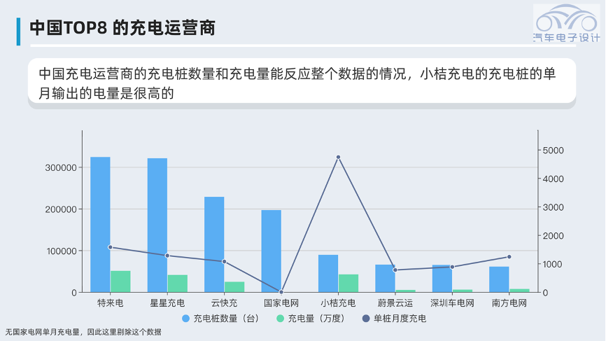 关注中国充电设施的情况,电网、运营商和车企企业的自建网络。