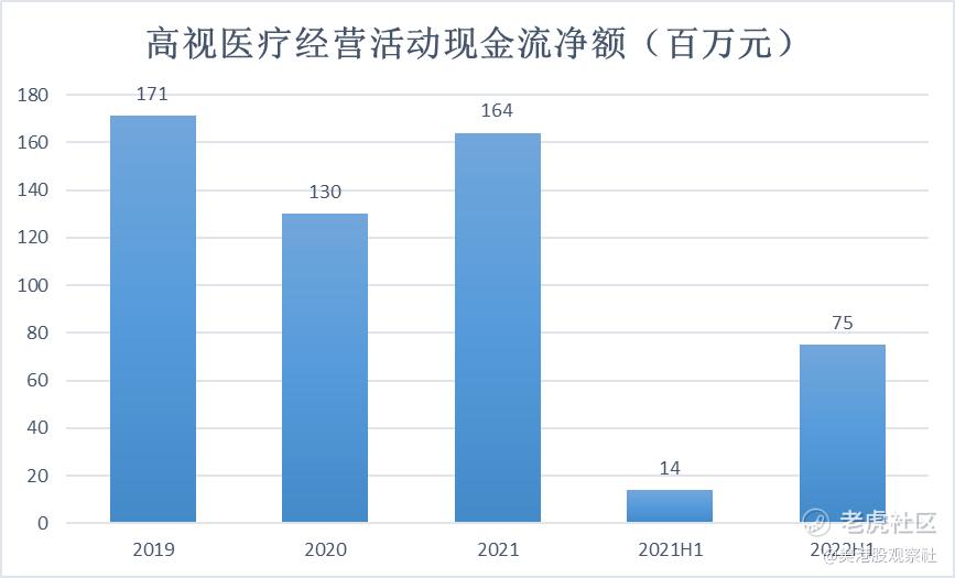 此外,从现金流来看,高视医疗也同样稳健,高视医疗的经营活动现金流始终为正,2021年为1.64亿元,同比增长26.5%。2022上半年为7,526.8万元,同比增长超5倍。