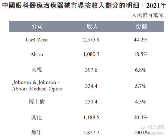 同样的衡量标准,高视医疗在中国所有眼科治疗器械供应商中排名第三,本土企业中排名第一,市场份额6.8%。