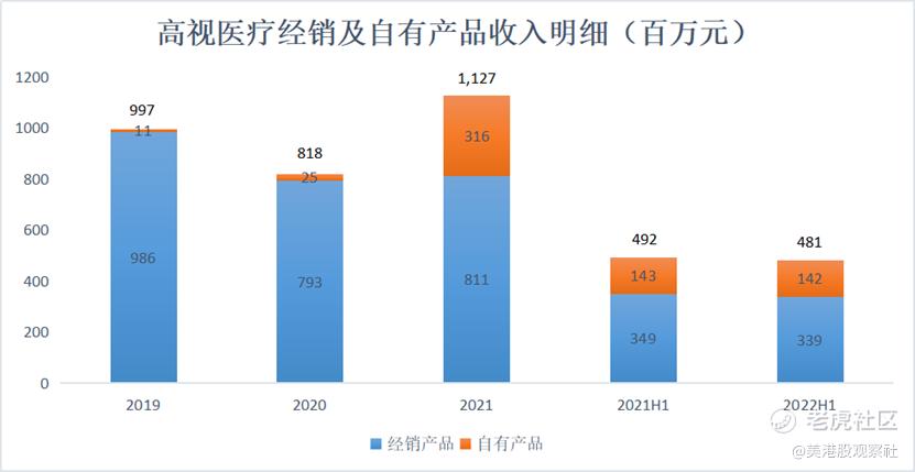 在图中还可以看到,高视医疗的毛利率持续提高,从2019年的41.8%提升至2022年上半年的48.6%。这得益于高视医疗持续研发投入,自有产品占比提高。预计未来,高视医疗的毛利率还会继续提升。