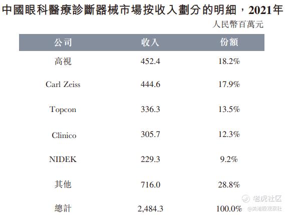 按2021年收入计算,高视医疗是中国所有眼科医疗诊断器械供应商中排名第一,占有市场份额18.2%。