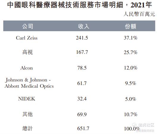 在2021年的中国眼科医疗器械技术服务市场中,高视医疗排名第二,市场份额25.7%。
