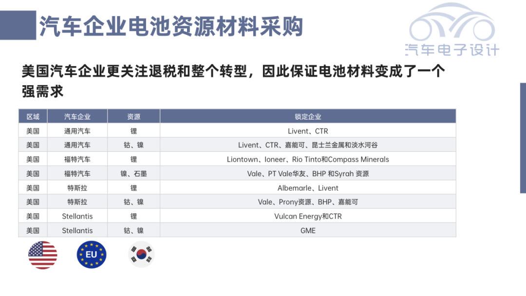 行业洞察|美国整车企业电池材料保障计划