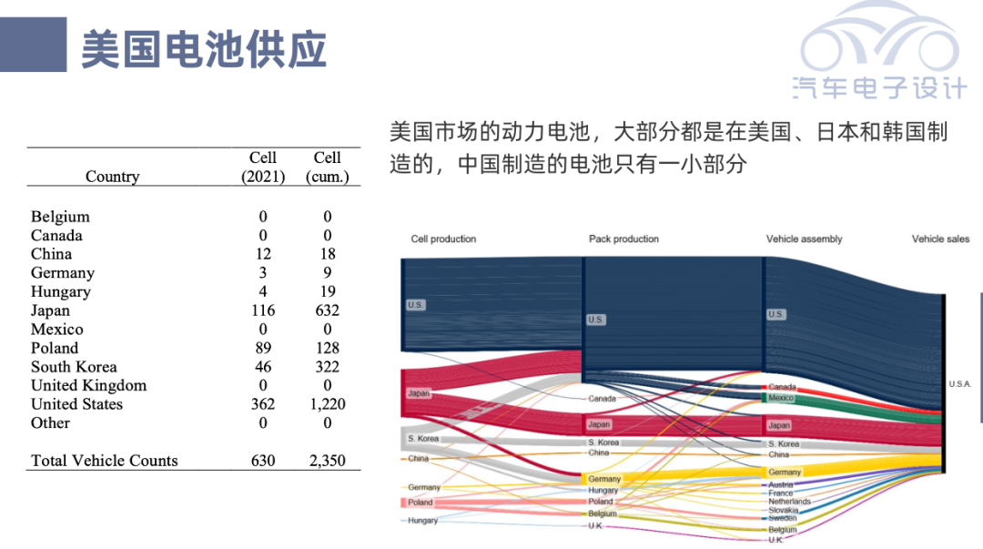 整个美国的电池供应,从地理来看主要围绕美国本土、日本和韩国三个地方,波兰也有大量制造的电池在美国用,中国生产的只有一小部份。